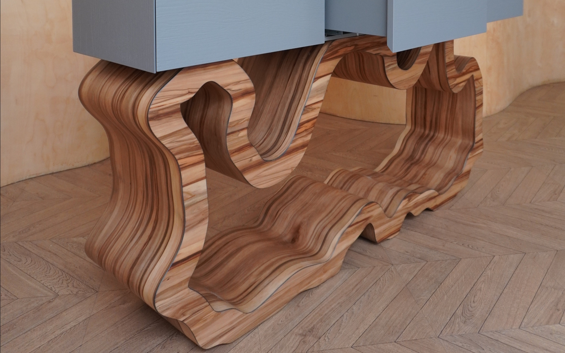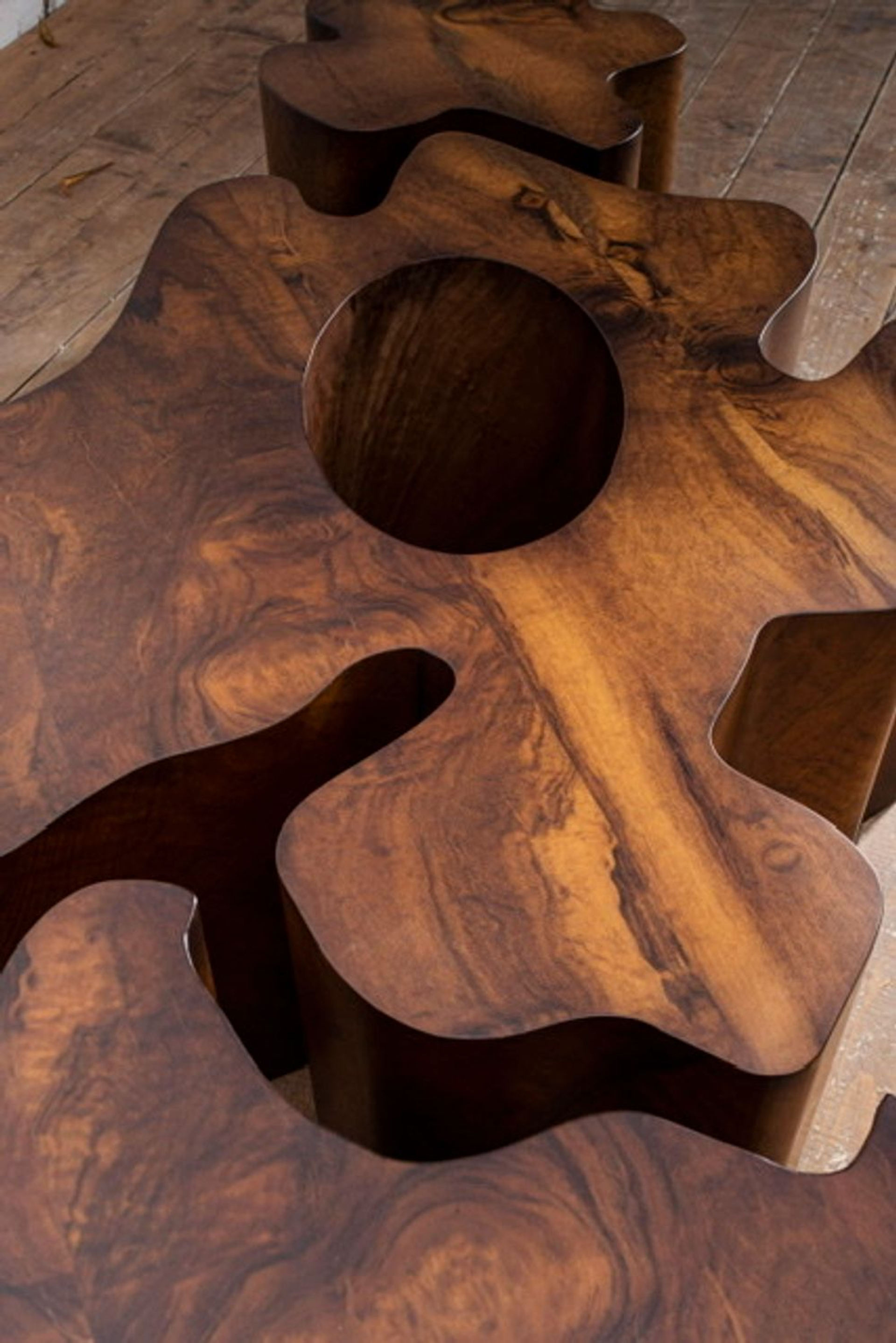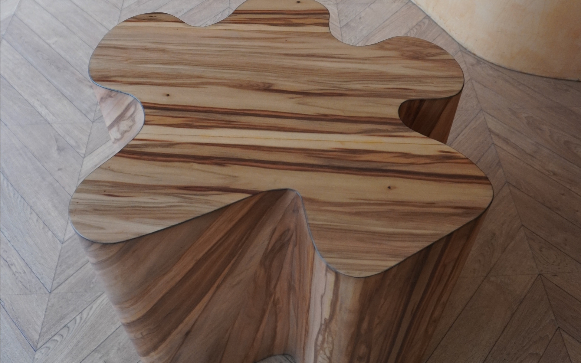 Имеет широкую разнообразную текстуру, листы дерева всегда разные. Общий тон рыже-коричневый