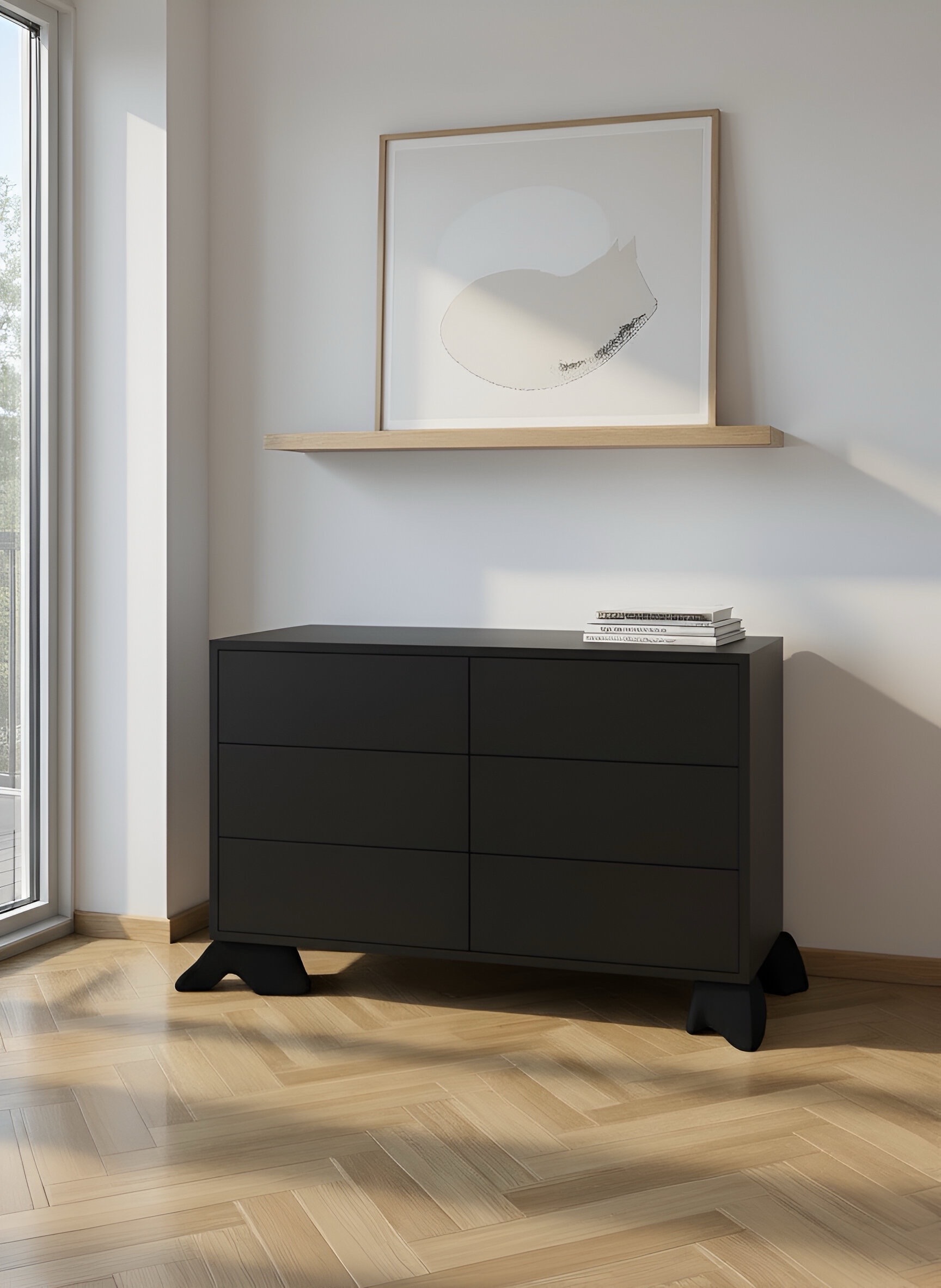 Комод имеет выдвижные ящики. Но можно сделать его как обувницу, установив внутрь соответствующие откидывающиеся полки.