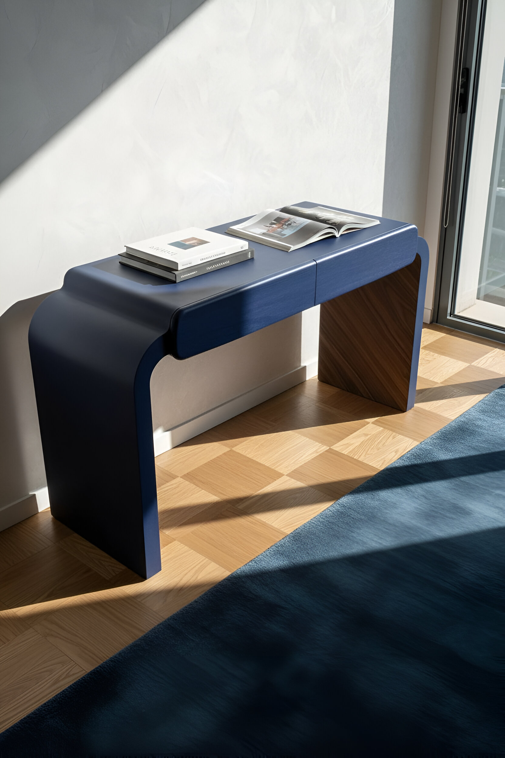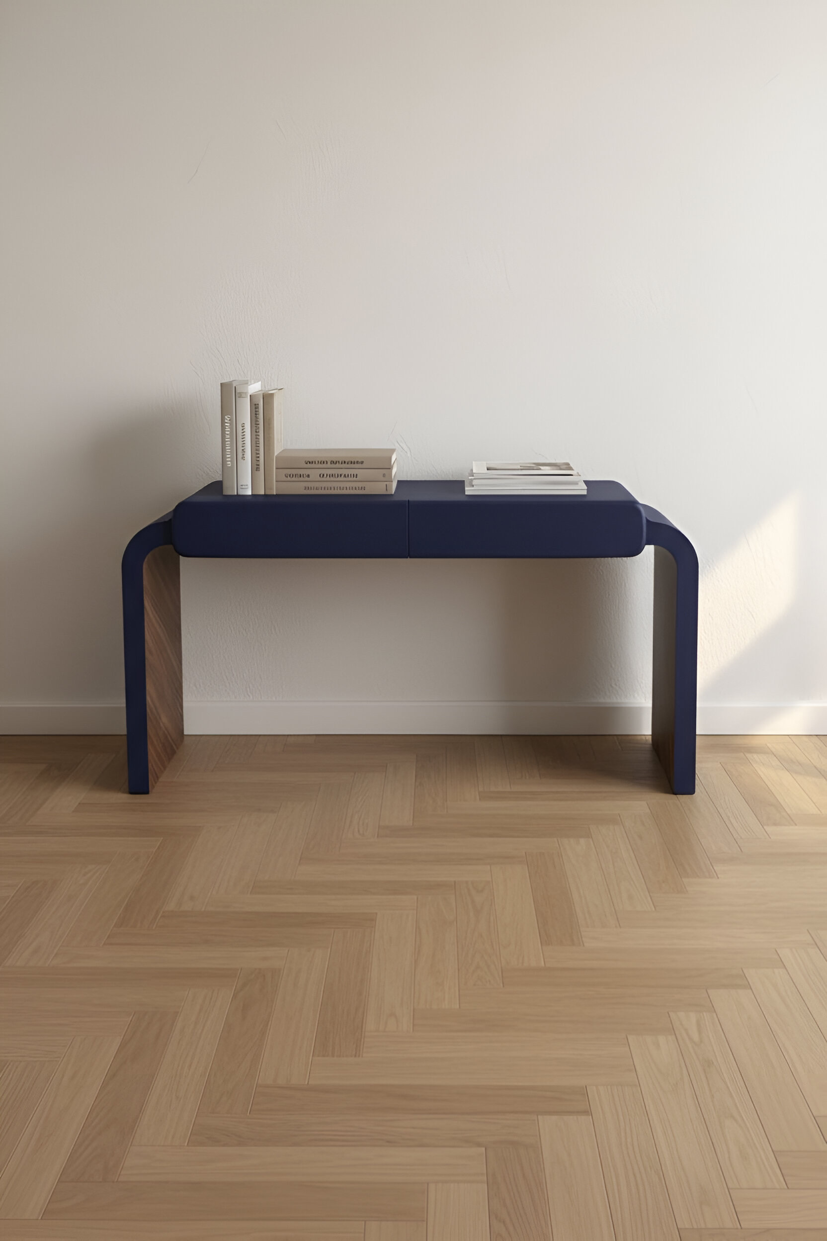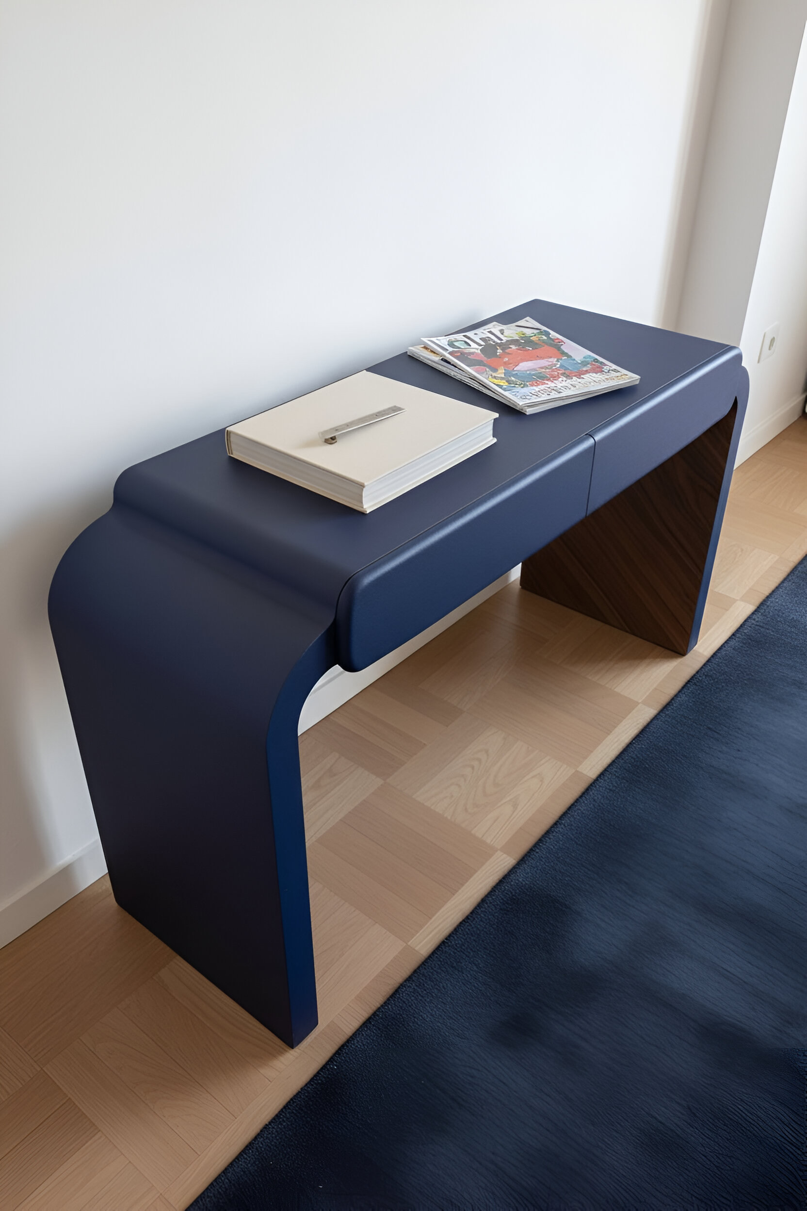 Внешняя часть стола и фасады ящиков в цвете рал 5026 с текстурой